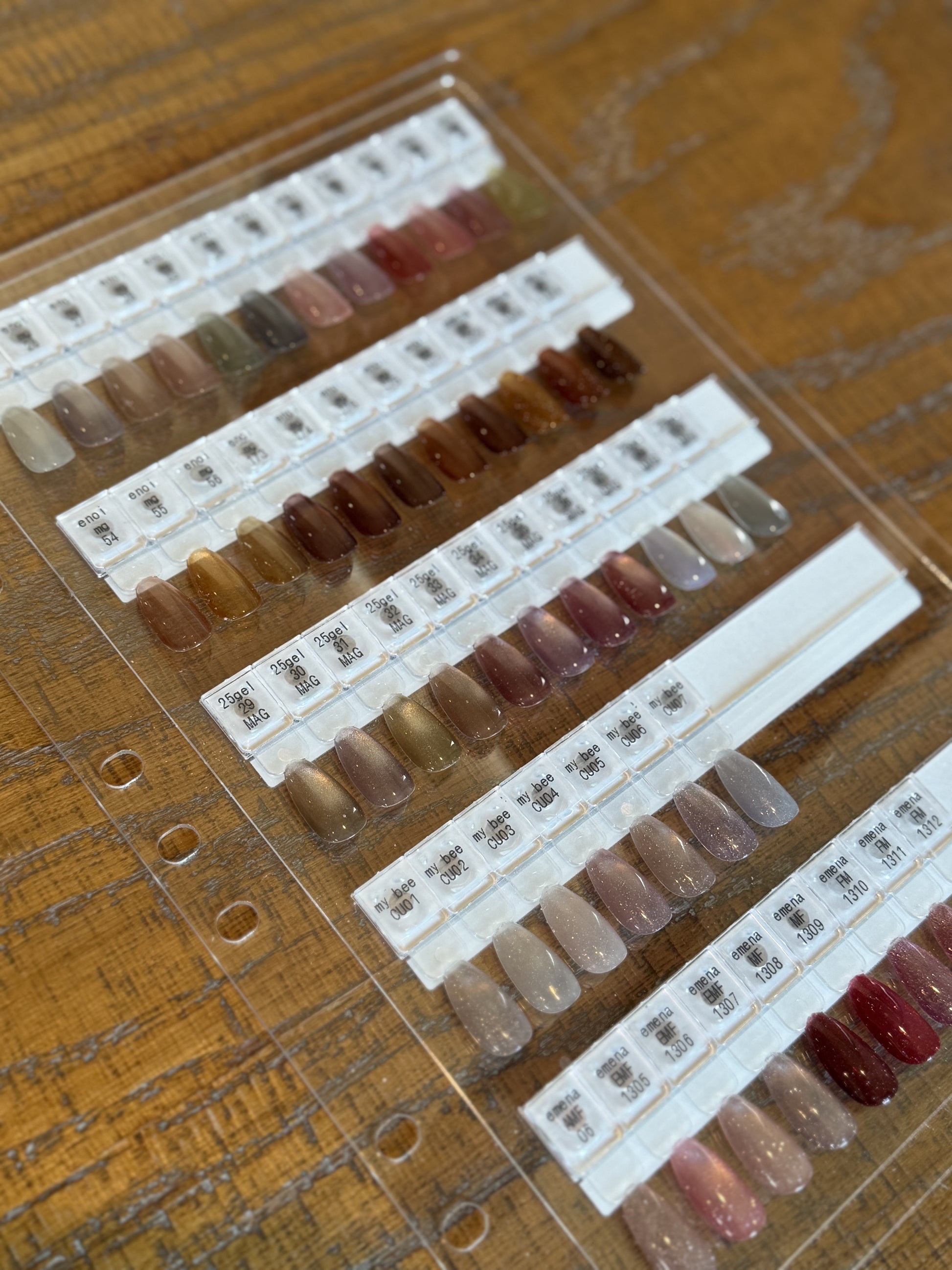 パッと見渡すことができ、簡単に外すこともでき、カウンセリング時に色合わせもしやすく使いやすいです
